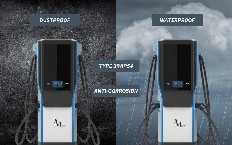 The AM Ampax Series delivers high-performance Level 3 charging with a powerful output range from 60kW to 240kW, and is upgradable to 320kW. Designed for efficiency and reliability, these stations provide an 80% charge in just 30 minutes for most EVs. Equipped with robust safety certifications and advanced protection features, they ensure secure and durable operation. Ideal for various applications, from public networks to private facilities, the AM Ampax Series supports seamless integration with Ethernet and 4G communication methods, and is compliant with the latest OCPP protocols.